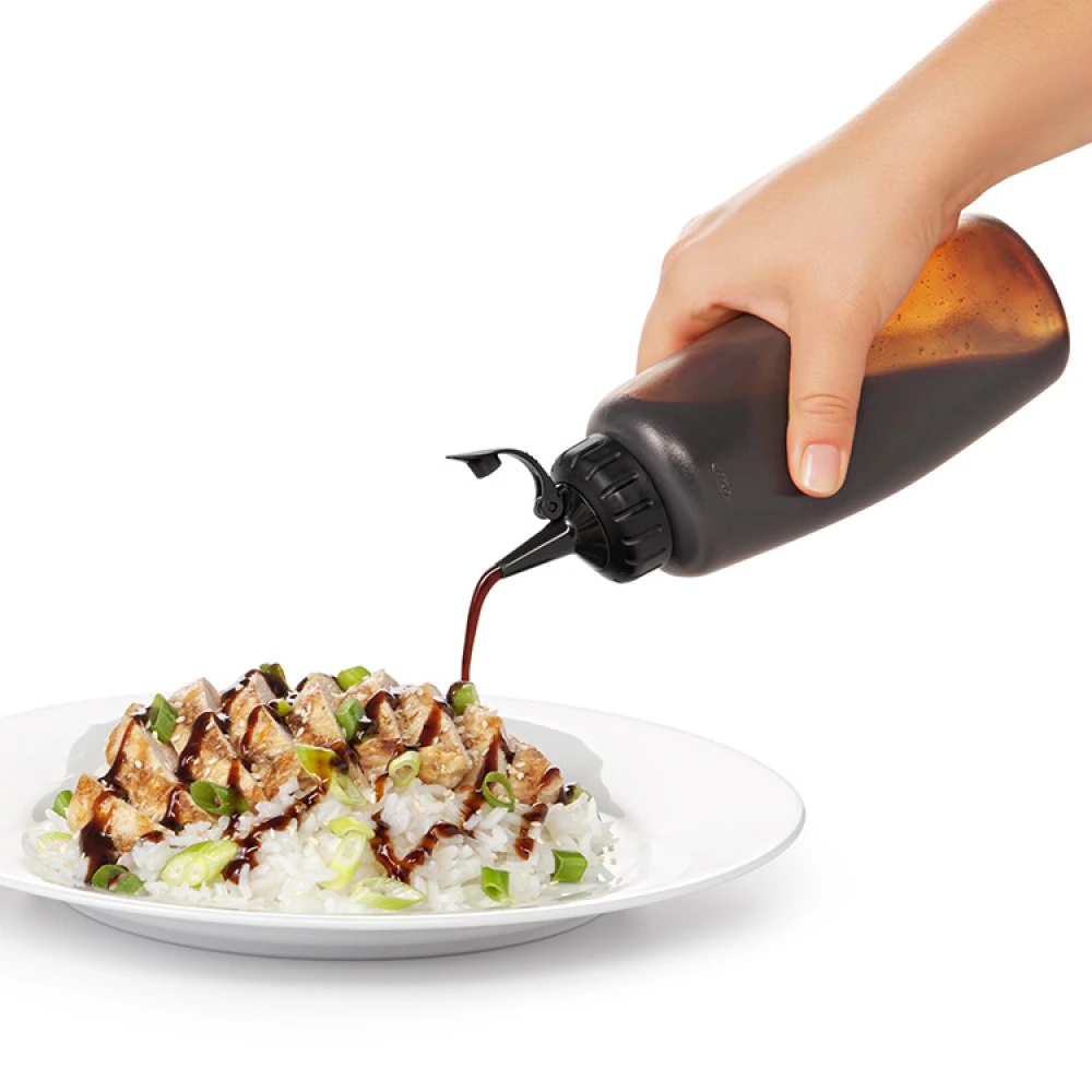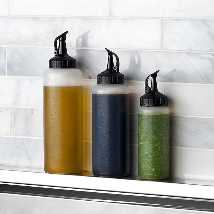 Bland dine enge sauser, dressinger og marinader rett i flasken! Graderingen på utsiden av flasken gjør det enklere å måle og følge en oppskrift. Lokket kneppes på og sitter godt fast slik at du kan riste flasken uten å søle.