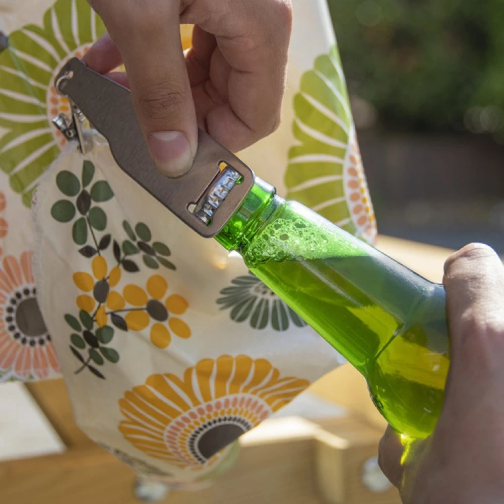 Med duklodd i rustfritt stål kan du enklere holde duken på plass over bordet på verandaen når det blåser. De flaskeformede dukloddene har dessuten integrerte flaskeåpnere i bunnen som alltid er i nærheten rundt bordet for å åpne flasker med brus, øl eller vann.