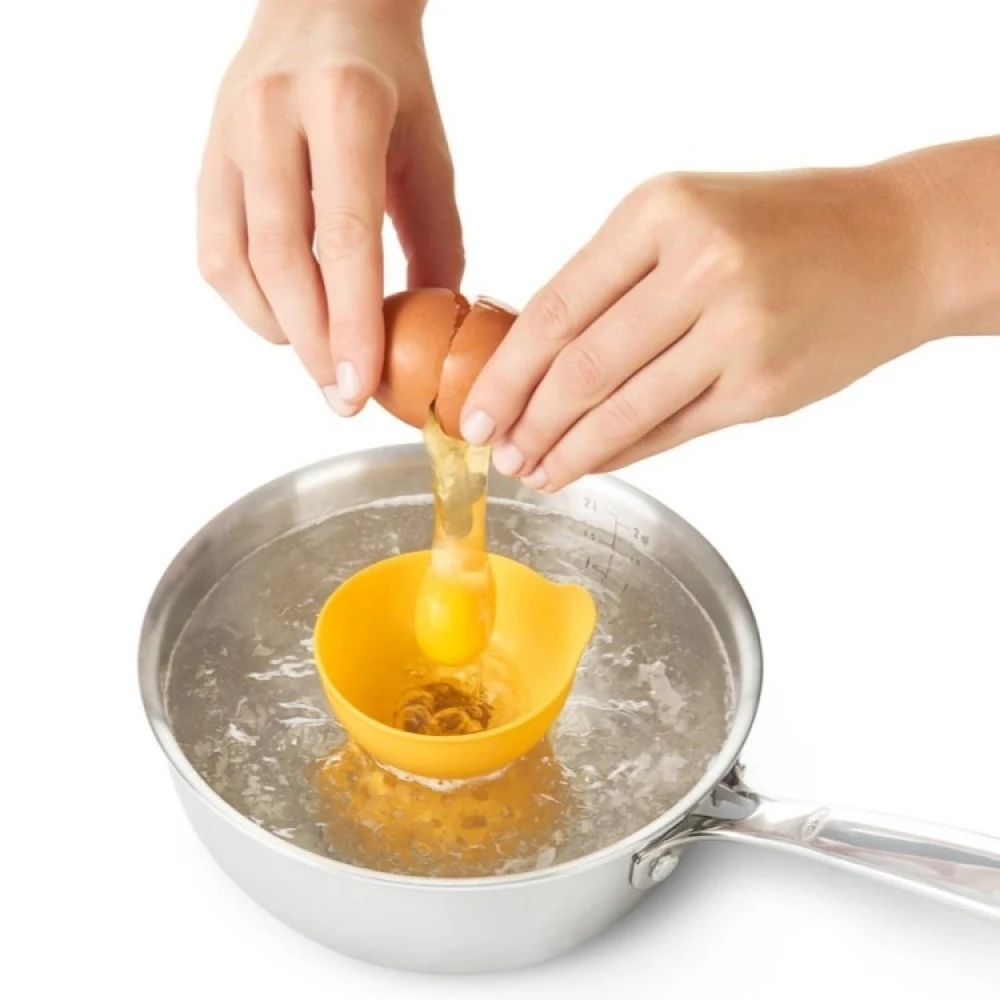 Eggposjereren plasseres i bunnen av kasserollen og de smarte vannmarkeringene viser hvor mye vann du skal koke opp. Når vannet koker, senker du temperaturen og klekker et egg i eggposjereren. Den praktiske trakten hjelper egget ned i vannet og forhindrer plommen fra å sprekke.