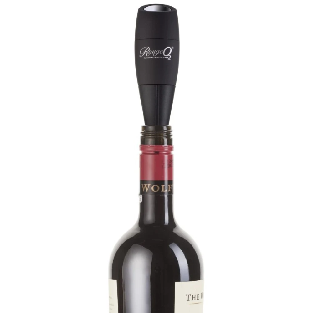 Den elektriske vinlufterens smale metallstang gjør det mulig å sende ned vinlufteren og lufte vinen direkte i flasken. Når du starter vinluftener tilfører den forsiktig luftbobler til vinen under 45 sekunder. Når tiden har fått har vinen fått tilstrekkelig mye luft og vinlufteren lukkes automatisk.