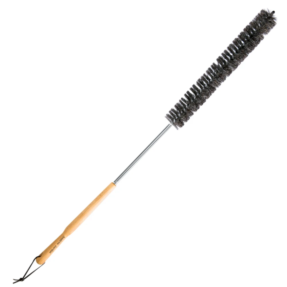 Det solide trehåndtaket kan du holde med en hånd eller to hender, og det er laget av bivokset fransk bjørketre. Stråene på børsten er en blanding av geithår og syntetiske børster. Børsten er skånsom mot alle flater og absorberer smuss og støv uten å etterlate merker.