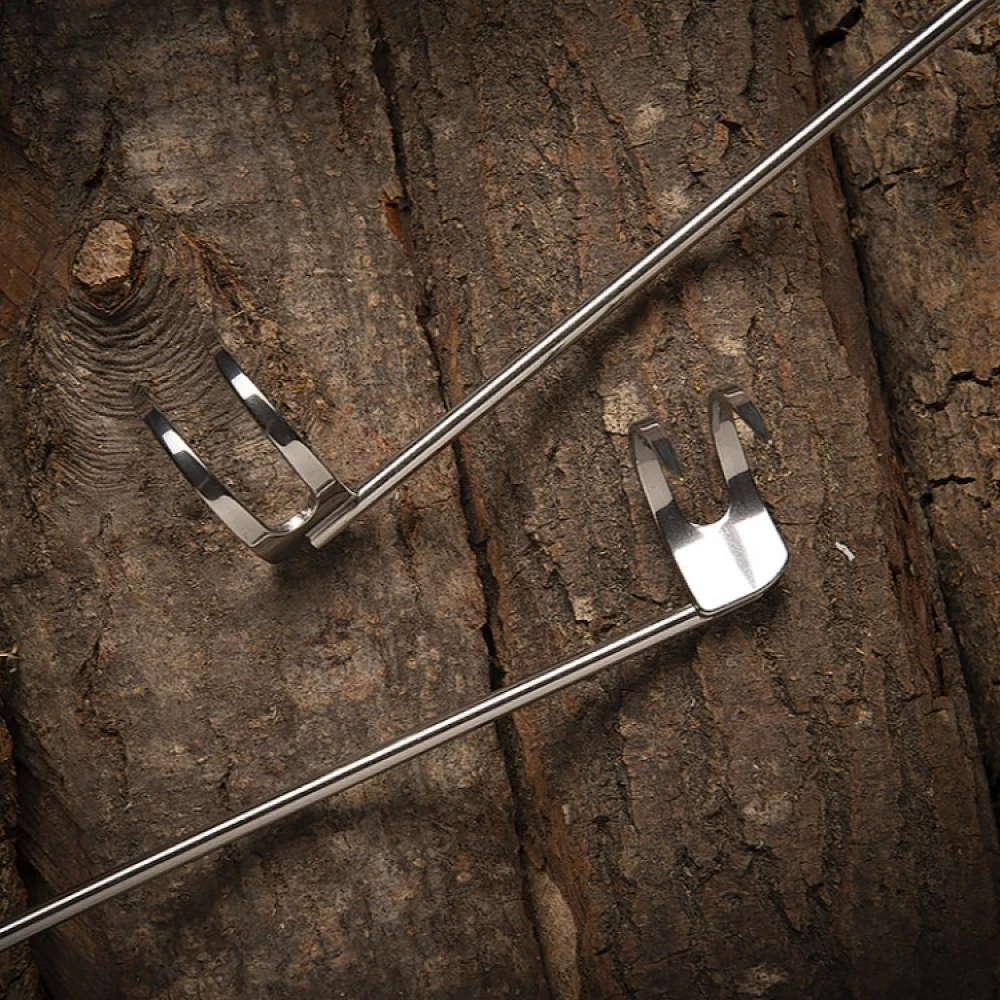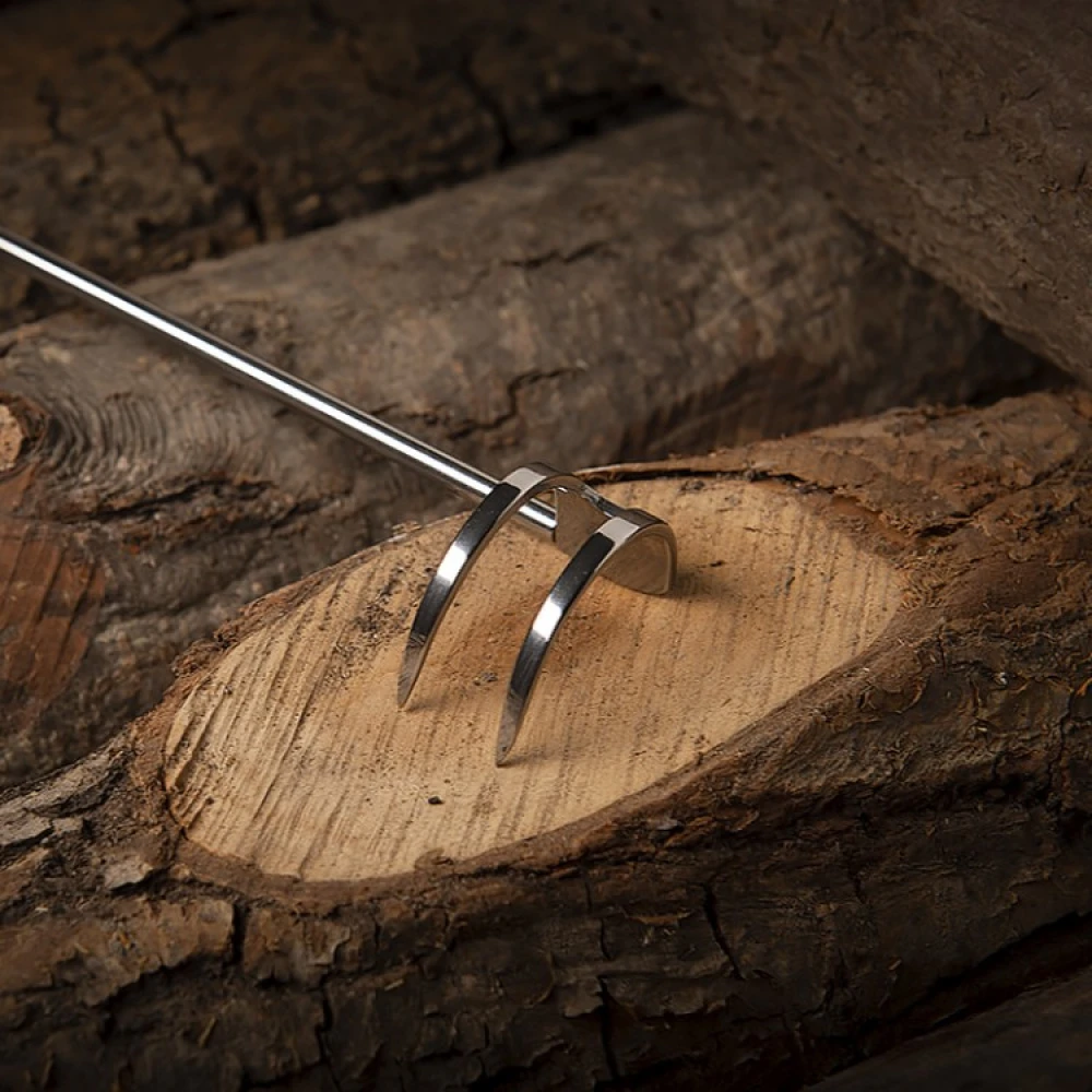 Den svenskutviklede grillpinnen North Hook er et smart grillverktøy, som gjør det enkelt å snu kjøttet og grønnsakene på grillen. Det lange håndtaket holder hendene borte fra den varme gløden, og de skarpe spissene gir et utrolig godt grep når du snur, flytter eller løfter kjøttet oppå serveringsfatet.