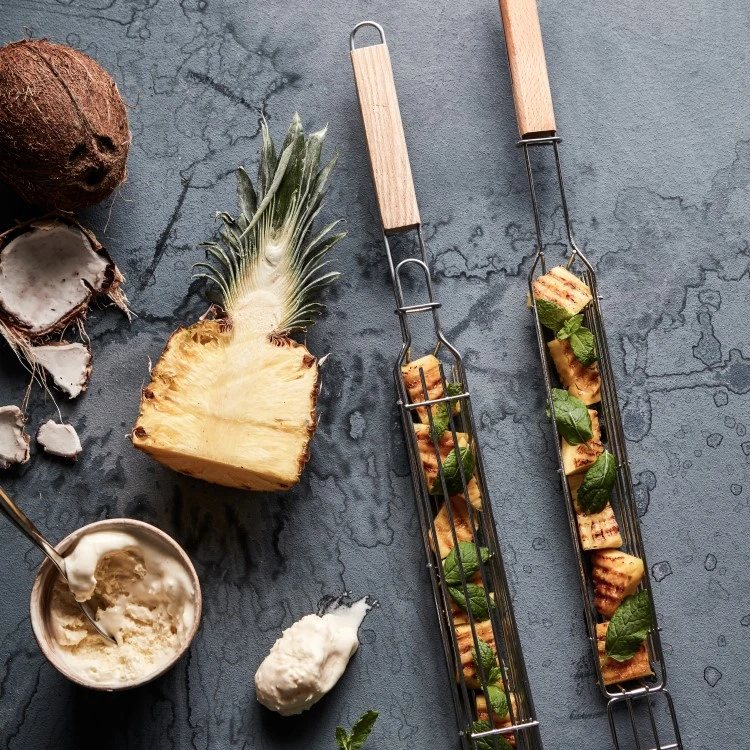 En grillpinnekurv er en lang smal grillkurv med lokk som du kan bruke i stedet for spyd når du griller på grillen eller over åpen ild. Settet inneholder to grillpinnekurver som er perfekte å bruke når du skal grille grønnsaker, sjømat, pølser og mindre kjøttstykker.