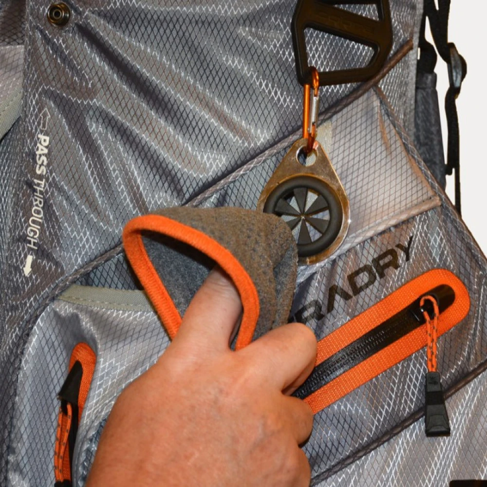 Denne smarte håndklehengeren er praktisk når du vil ha et lite håndkle for hånden når du skal vaske, drive med sport, male, jobbe eller gå tur. Håndklehengeren har hurtigfeste for håndkleet og en liten karabinkrok som gjør håndklehengeren enkel å feste på sekken, vognen og golfbagen eller i buksebenet på arbeidstøyet ditt.
