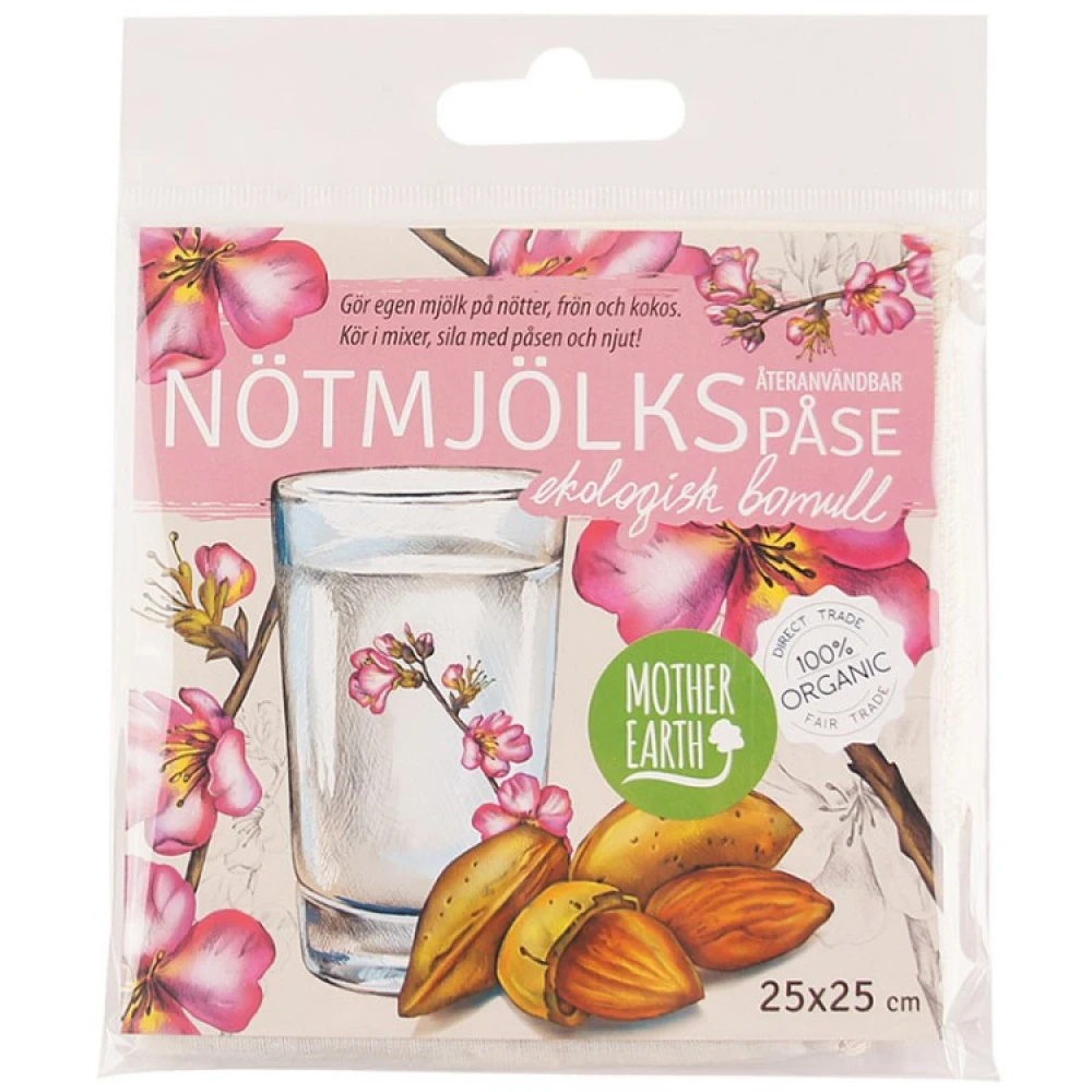 Nøttemelkposen kan brukes når du lager alle slags plantebaserte drikker. Den fungerer utmerket for å sile blandede nøtter, frø, kokosflak og havre, eller for å skille fruktkjøtt fra juice. Silposen kan også brukes når du skal lage din egen ost.
