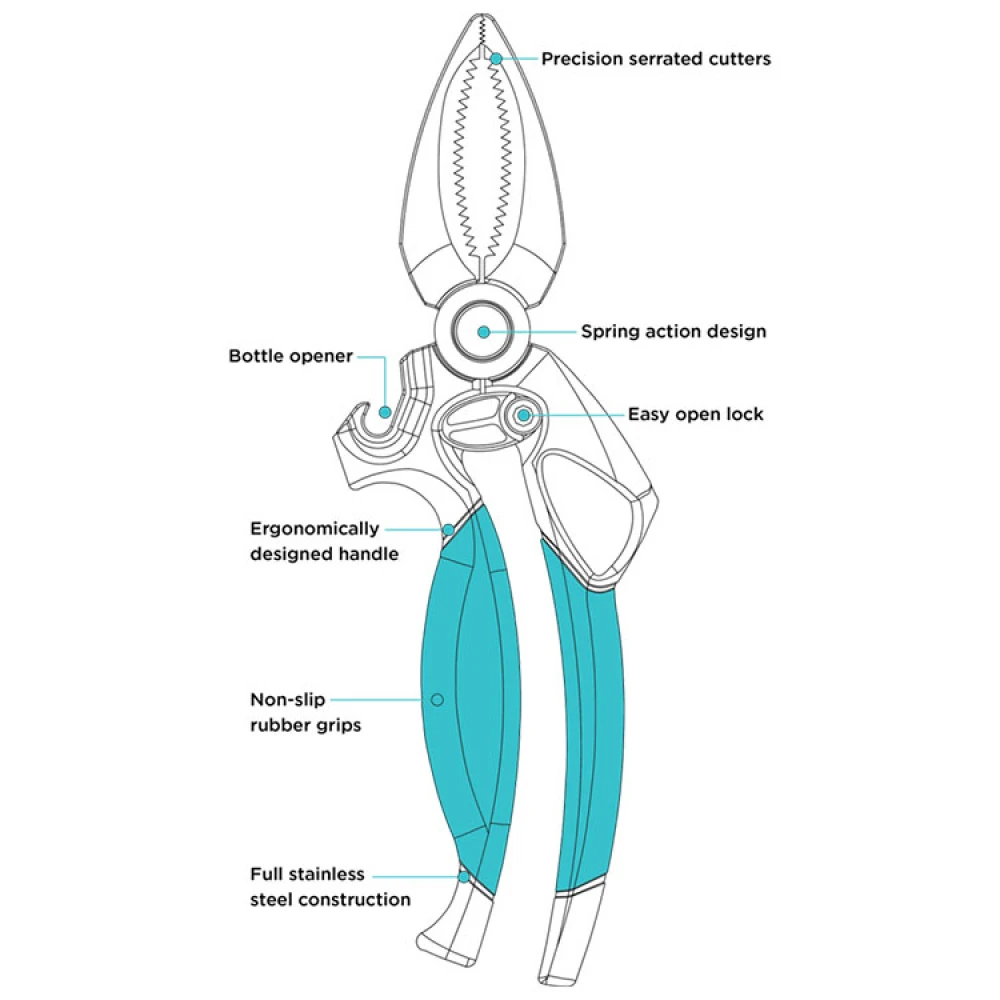 En klosaks er et perfekt verktøy til buffeen med skalldyr, og gjør det enkelt å åpne klørne på krabber, hummere og kreps. Det skarpe bladet på saksen knuser klørne rundt kjøttet, noe som betyr at du kan trekke ut det gode kjøttet i klørne i en hel bit.