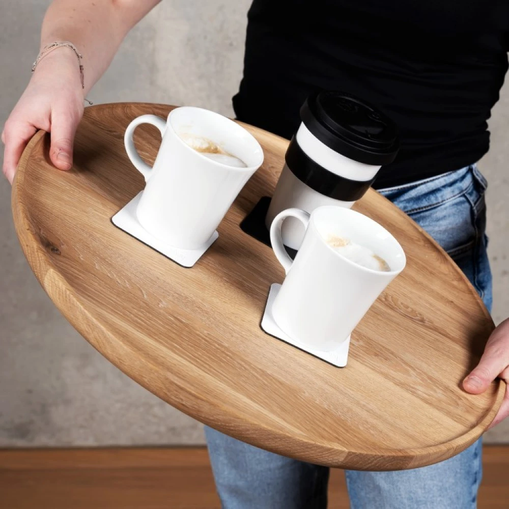 Takeaway-koppen er laget av porselen i høy kvalitet og har en vakker integrert magnet i bunnen. Den perfekt balanserte magnetismen mellom porselenskoppen og magnetunderlaget gjør at takeaway-koppen står stødig, samtidig som det er lett å ta opp når du vil drikke kaffe eller te.