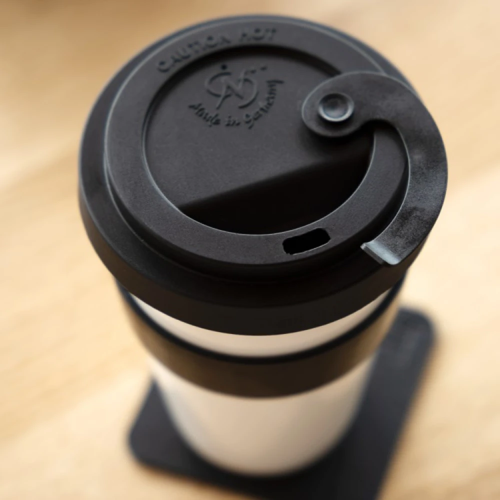 Det tettsittende lokket hjelper koppen med å holde på varmen og hindrer også at innholdet drypper ut når du skal på byen eller på båttur. Lokket har også en åpningsbar tut som kan trekkes til siden når du drikker fra kruset. Det elastiske og varmebeskyttende båndet rundt take-away-kruset gjør det lettere for deg å holde i kruset når du drikker varme drikker som te, kaffe og varm sjokolade.