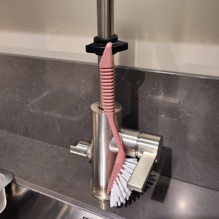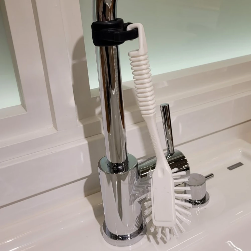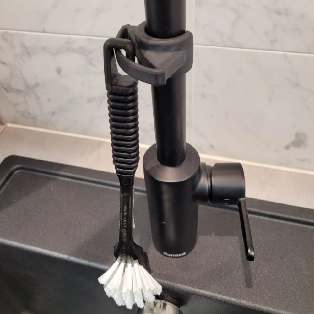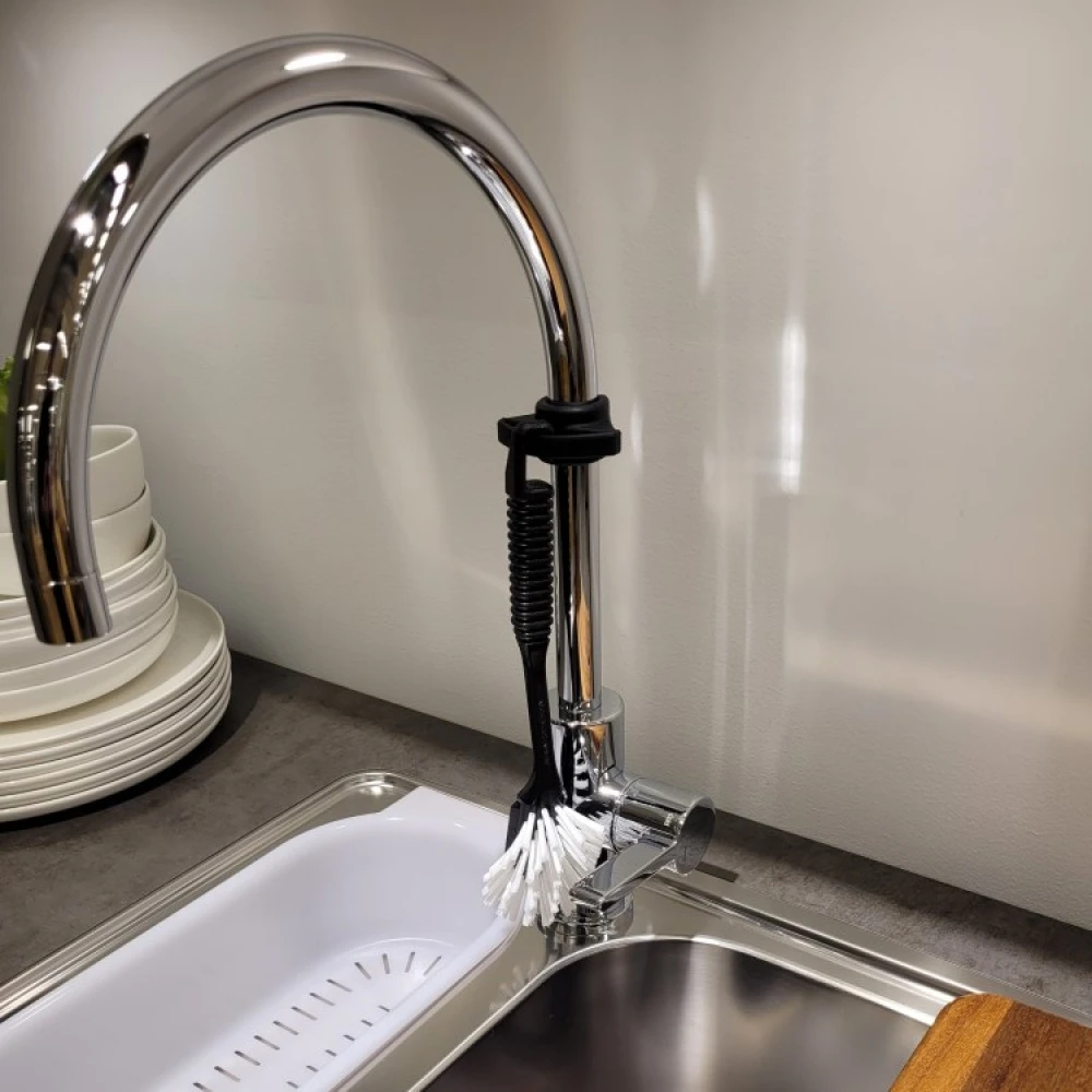 Med denne svenskutviklede holderen til oppvaskbørsten får oppvaskbørsten din en naturlig krok å henge i på kjøkkenet. BendRe oppvaskbørsteholder til kranen tar liten plass og er tilpasset oppvaskbørster som har krok på håndtaket.