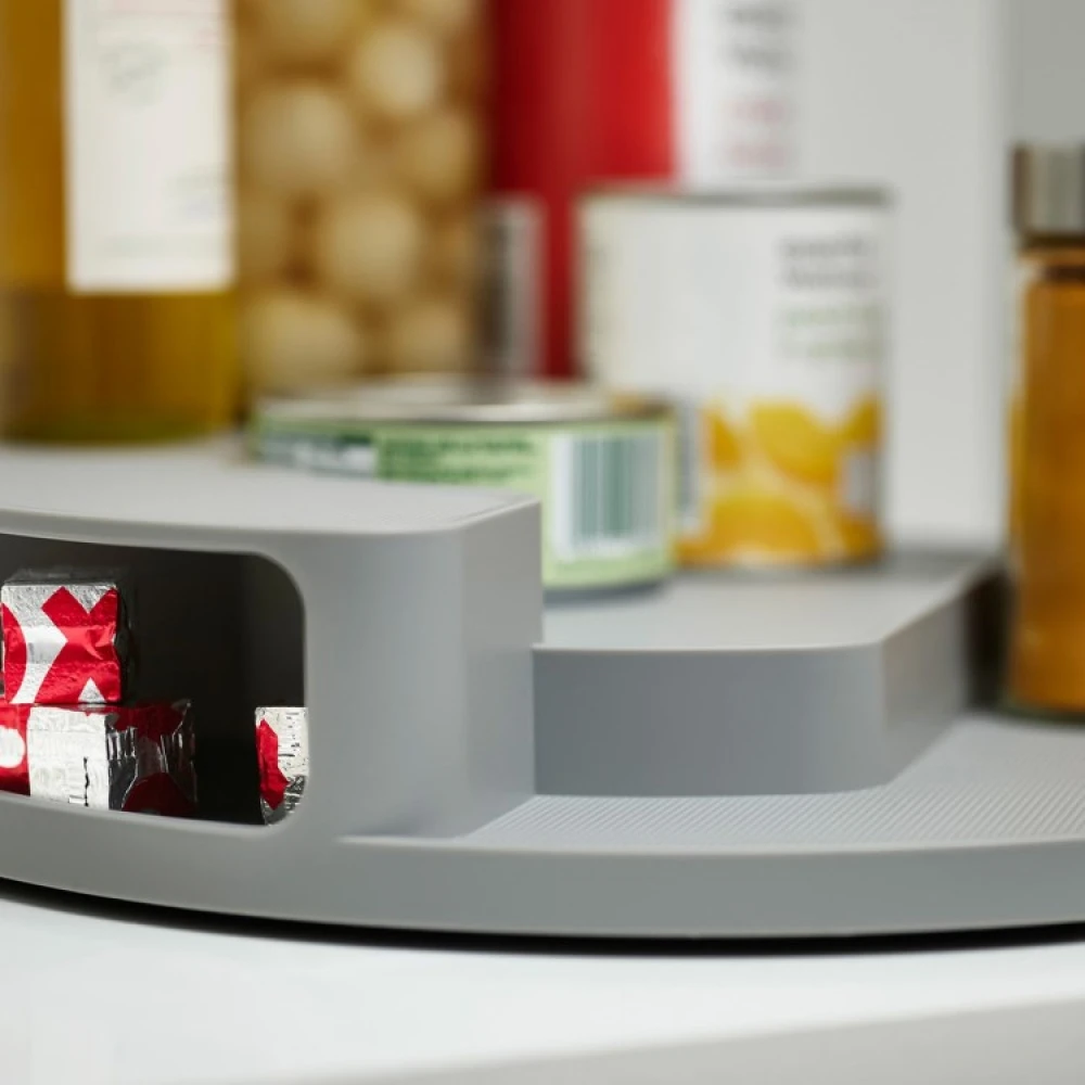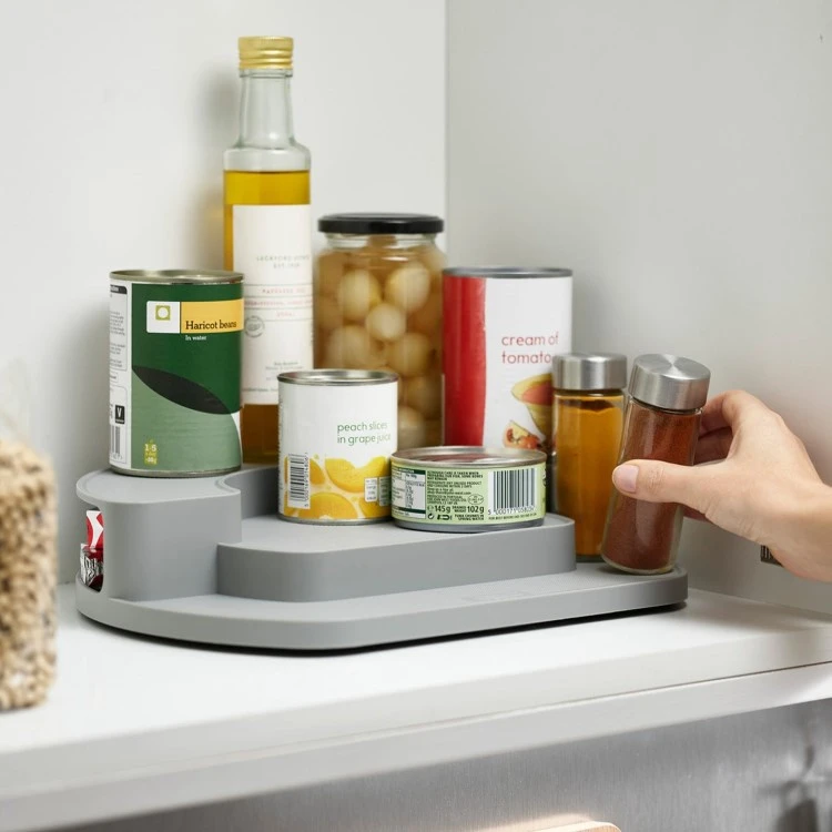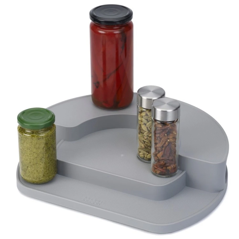 Dette roterende krydderstativet fra Joseph Joseph er en effektiv oppbevaringsløsning med tre nivåer, som gjør at du enkelt kan se hva du har i skapet. Den dreibare platen under krydderstativet gjør at du kan snurre på stativet og enklere nå krukkene, flaskene og forpakningene som står lengst inn.