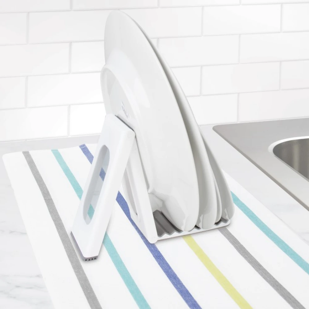 Med dette lille sammenleggbare oppvaskstativet kan du lettere tørke noen tallerkener, skjærebrett eller brett som du har vasket for hånd. Det fleksible oppvaskstativet tar liten plass, står stødig på vasken og kan raskt slås sammen når du trenger det.