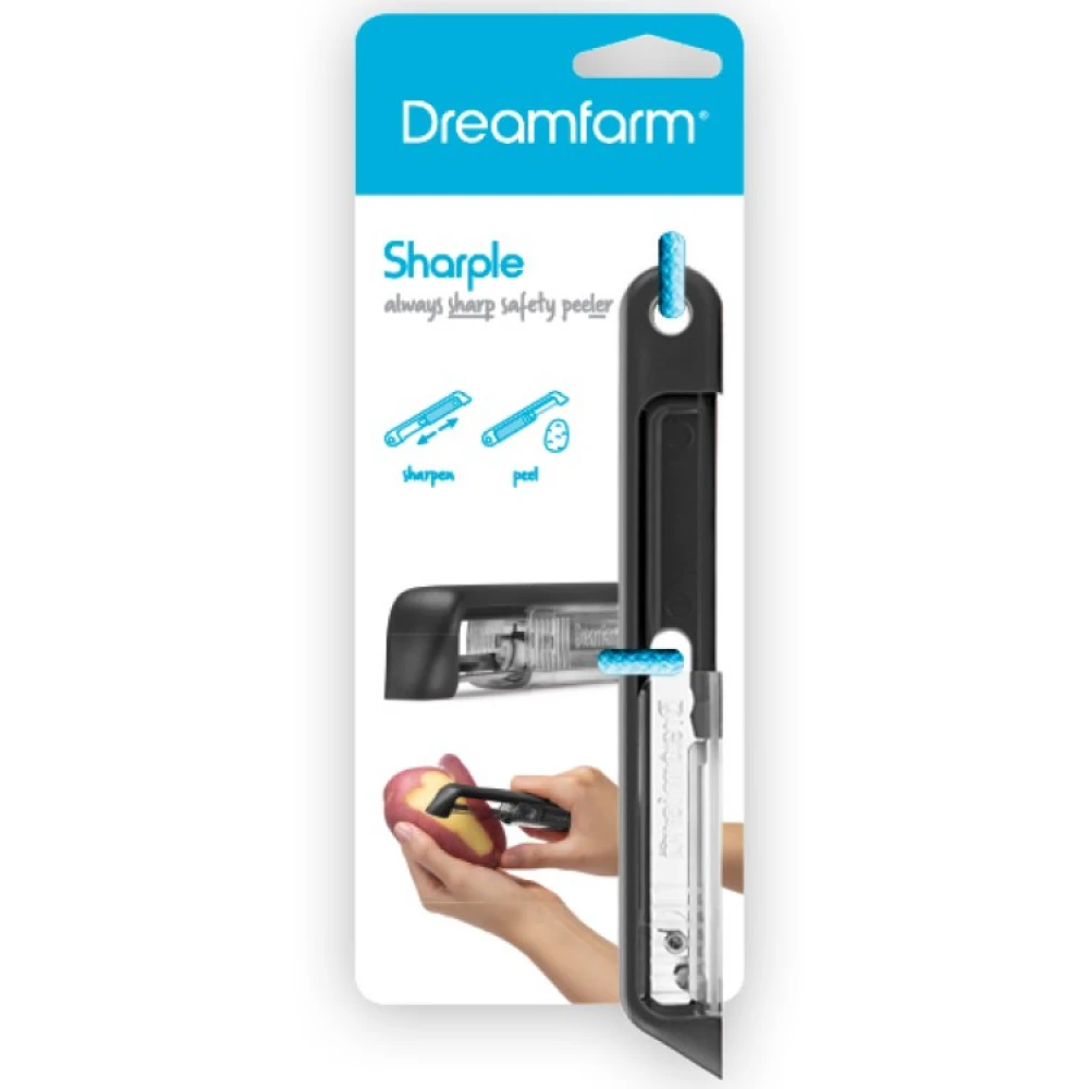 Potetskrelleren Sharple er utviklet av den australske bedriften Dreamfarm. Sharple står for “Always Sharp Safety Peeler”.