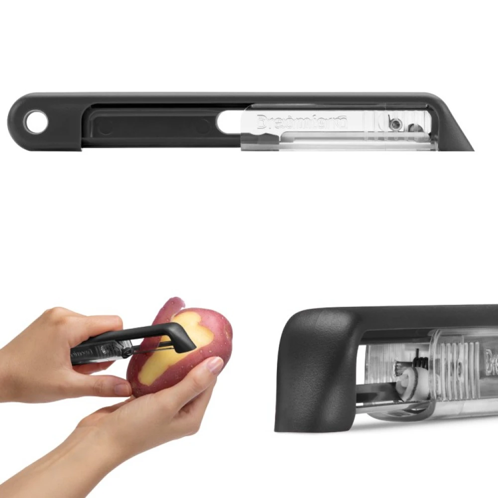 Det utrolig skarpe bladet er produsert av japansk rustfritt stål og er designet til å holde livet ut. Bladet av høy kvalitet ruster ikke i oppvaskmaskinen og kommer alltid til å være skarpt når du trenger skrelleren som mest.