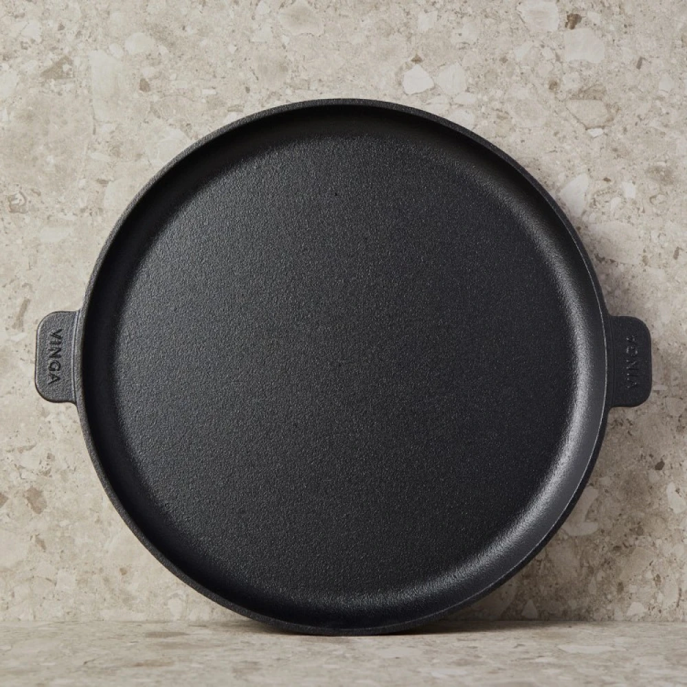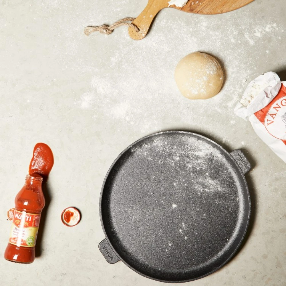 Med støpejernpannen kan du også tilberede favorittpizzaen din rett på grillen. For en herlig og sprø pizzabunn kan pannen med fordel forvarmes på grillen, på komfyren eller i ovnen. Kjevle ut deigen på et bakepapir samtidig som pannen varmes opp, og legg deretter deigen forsiktig ned i den varme støpejernpannen. Legg på toppingen og gjør ferdig pizzaen på grillen.