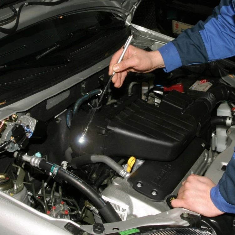 Den integrerte LED-lampen lyser automatisk når du trekker ut skaftet. Lampen gjør det lettere å finne gjenstander i mørke hjørner, motorrom, rom og skuffer. Lampen slår seg av automatisk når du komprimerer skaftet.