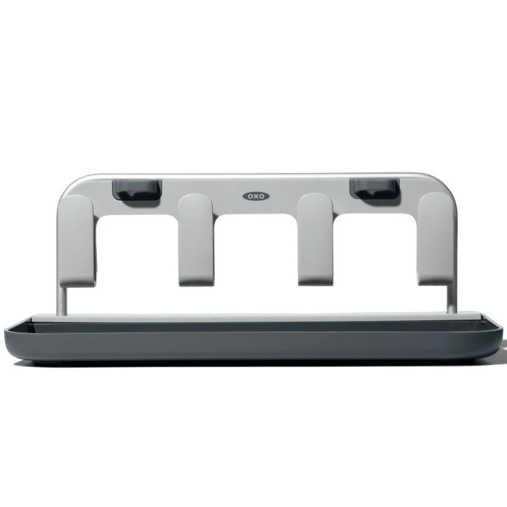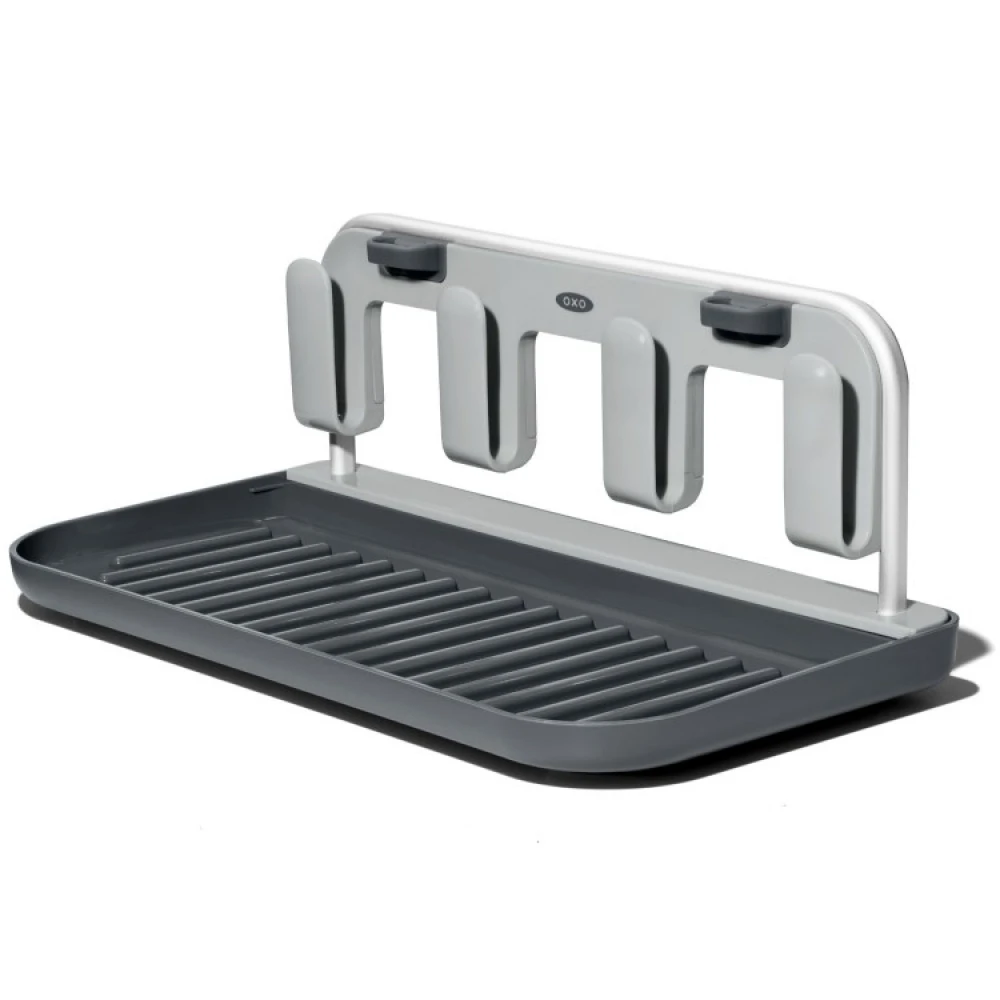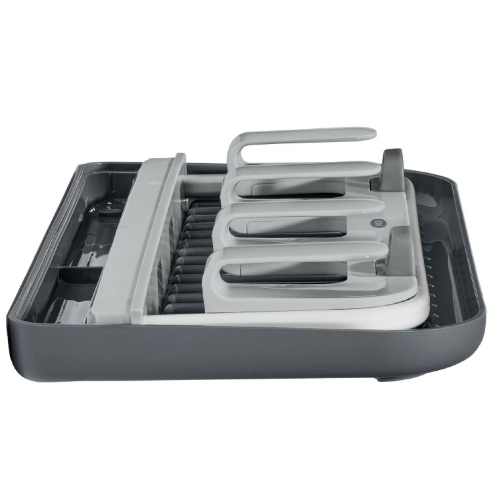 Etter bruk kan du fjerne den avtakbare delen der holderne er plassert. Legg den i dryppebrettet slik at du enkelt kan sette inn og oppbevare hele tørkestativet i skuffen.