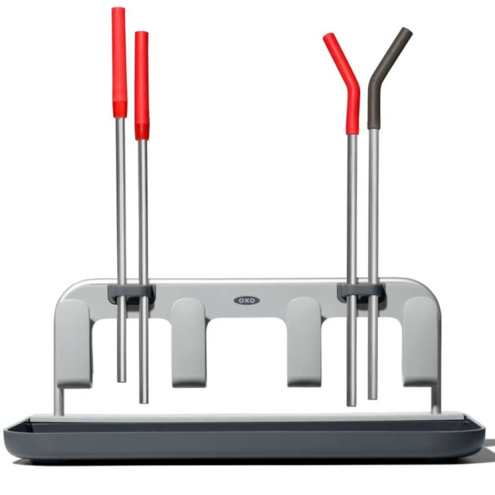 De to myke sugerørholderne kan holde to sugerør hver. Totalt kan du tørke 4 sugerør, hver opp til 1 cm i diameter på en praktisk og hygienisk måte.