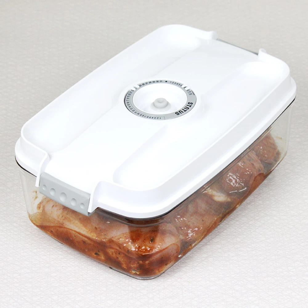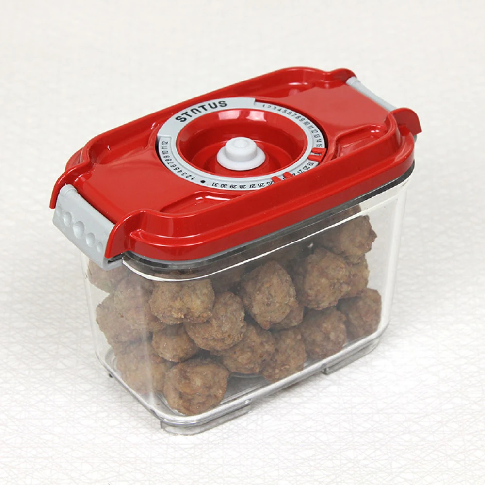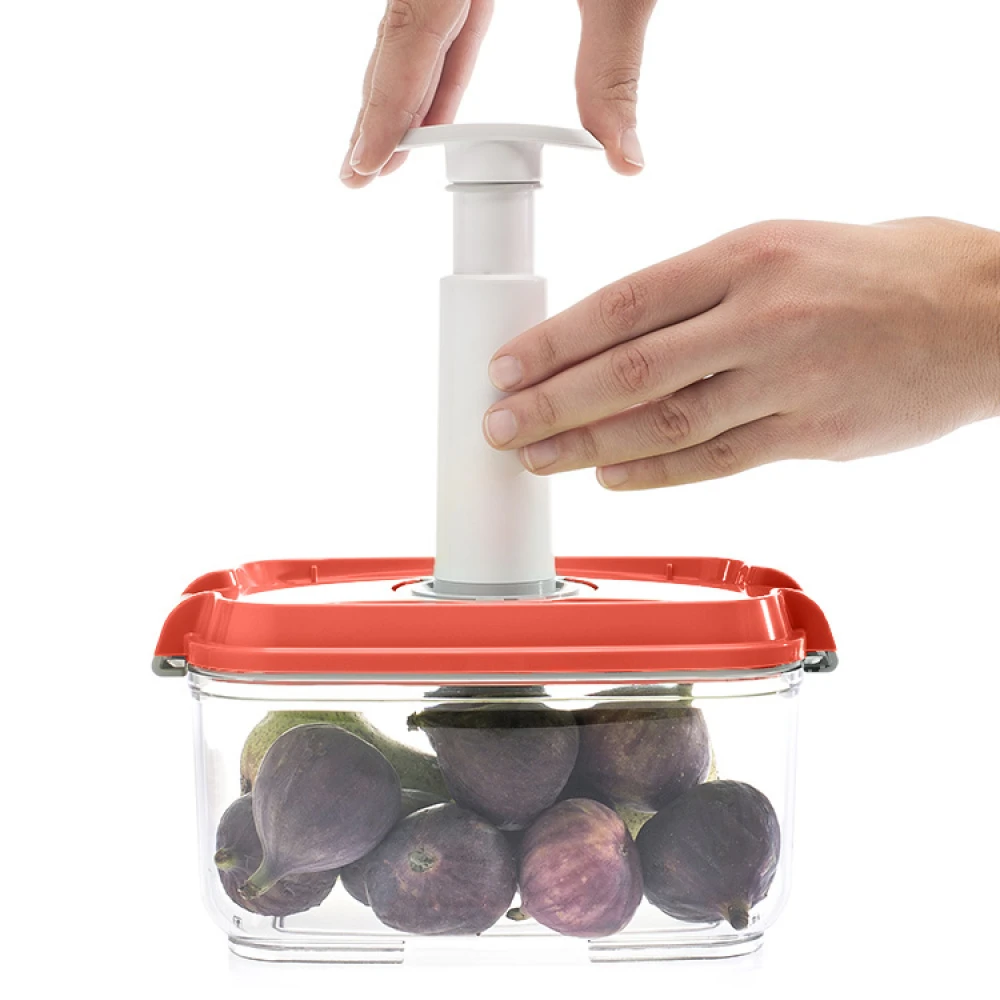 Ved hjelp av den praktiske datomarkøren på lokket har du full oversikt over når maten pakkes, og innholdet synes tydelig gjennom den gjennomsiktige boksen. Alle typer mat, sauser og supper kan oppbevares i vakuum.