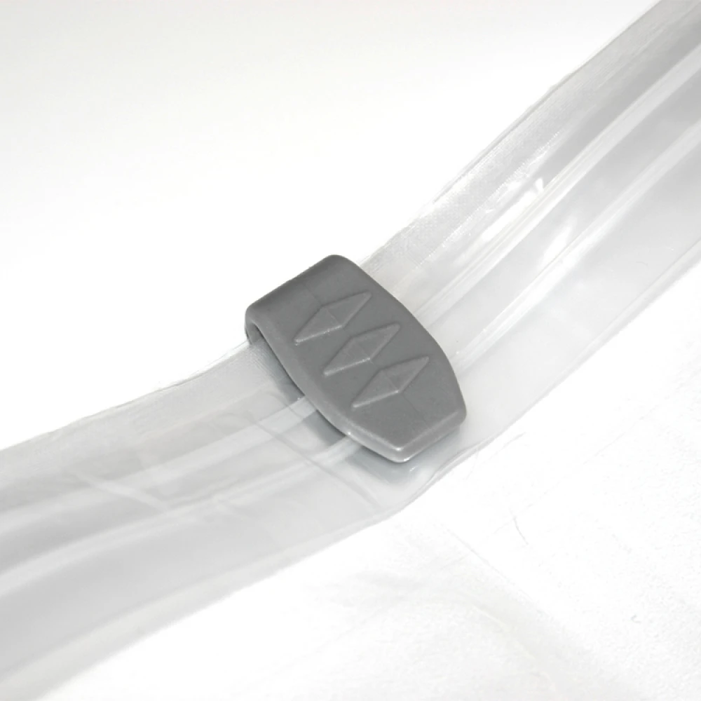 OBS! Vær veldig nøye med å lukke vakuumposen godt igjen. Den minste lille “usynlige” åpning i lukkekanten gjør at luft kommer inn i posen etterpå, og volumet vil øke igjen. Et tips er å kontrollere lukkekanten også etter at du har sugd ut luften. Tips! Du kan også trykke luften ut ved å rulle sammen posen fra bunnen før du lukker zip-låsen. Det blir ikke vakuumpakket, men er en praktisk løsning når du vil spare plass og ikke har tilgang til støvsuger.